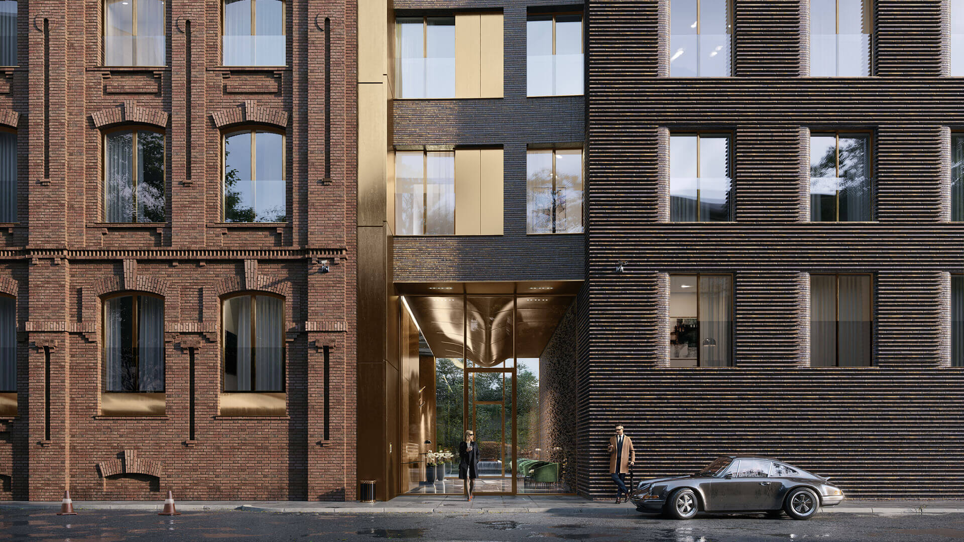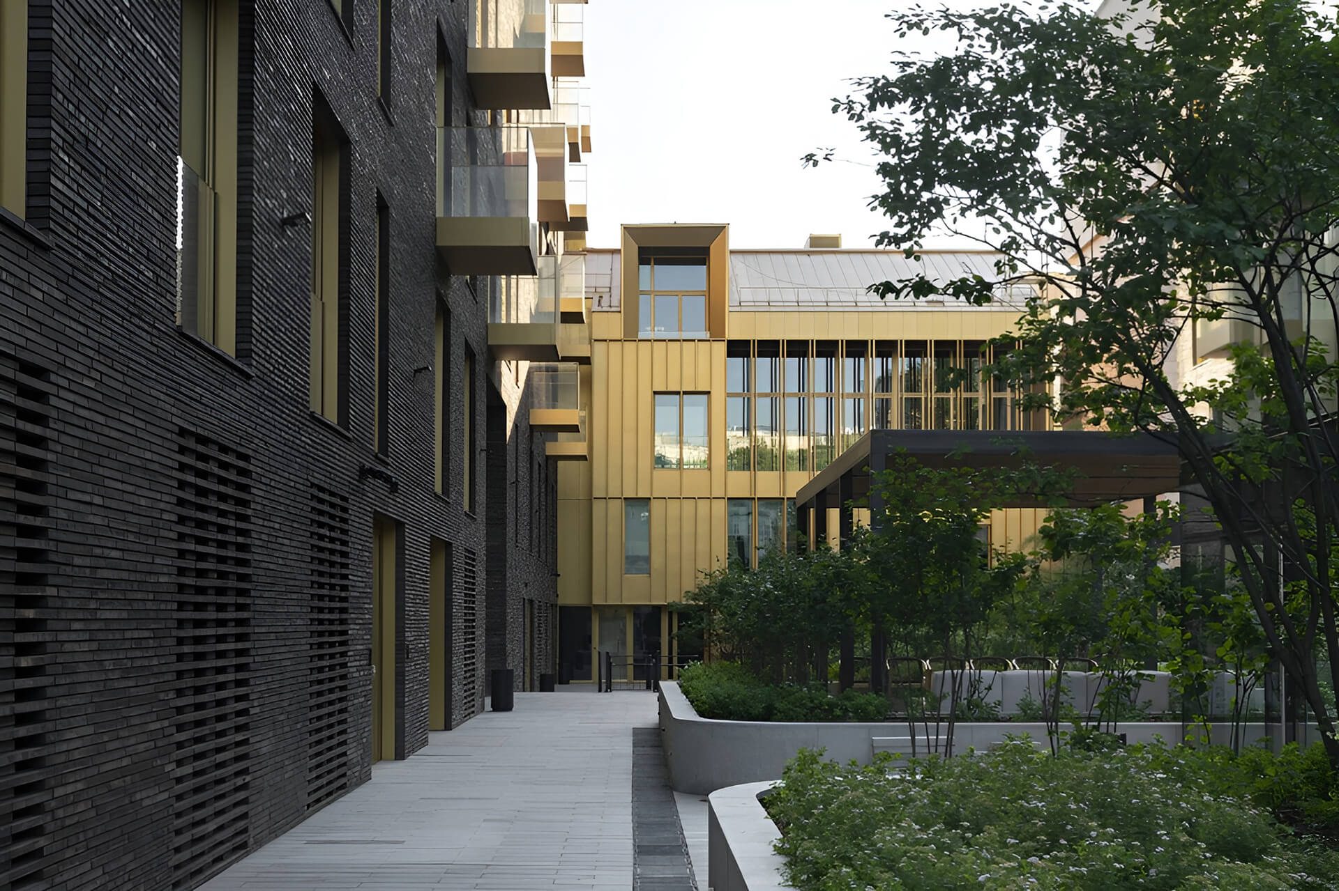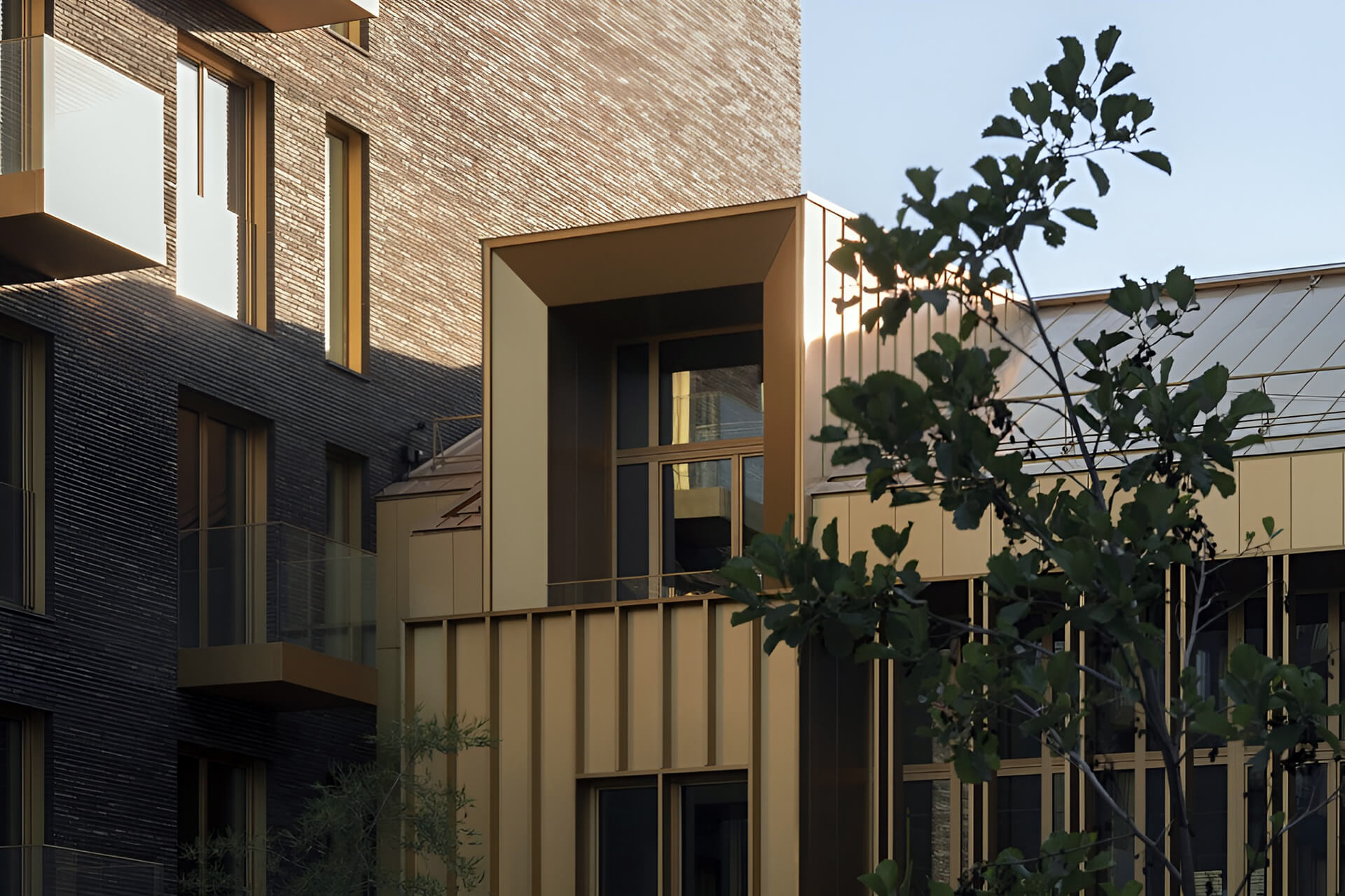 Использование натуральных материалов, таких как клинкерный кирпич, медь и латунь, придает зданию выразительность и долговечность. Панорамное остекление позволяет наполнить помещения естественным светом, создавая ощущение легкости и простора. Проект тщательно продуман с точки зрения эстетики и функциональности, что делает «Тессинский, 1» не просто жилым домом, а настоящим произведением архитектурного искусства.